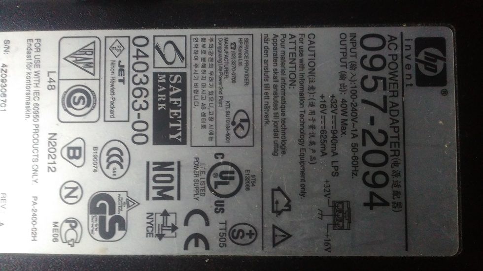 zasilacz urządzenie hp 0957-20...