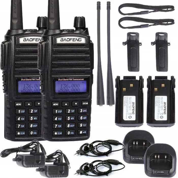Zestaw Krótkofalówek Baofeng UV82 HTQ 8Wat Rozblokowane Policja Straż