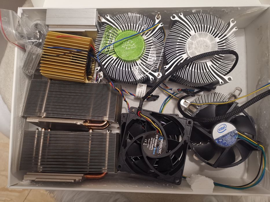 6 radiatorów i 5 wiatraków komputerowych z demontażu