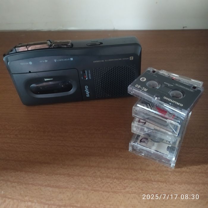 Dyktafon Sanyo, 4 kasety.