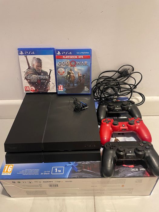 Play Station 4 1TB CUH-1216B 3 pady, 2 gry, PS4
