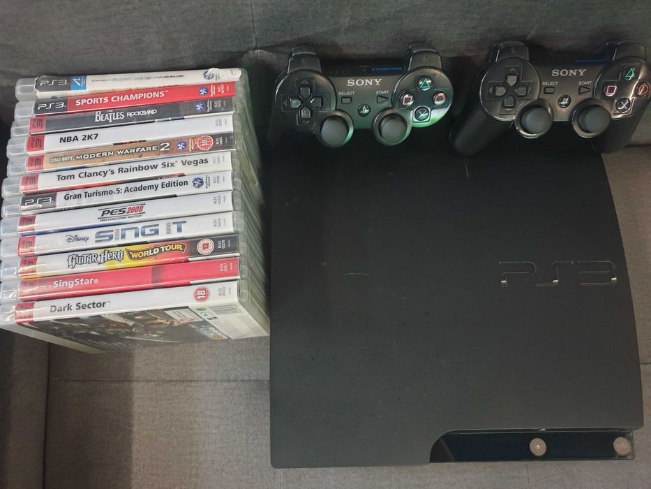 PS3 Slim 250gb + 2 pady + 12 gier
