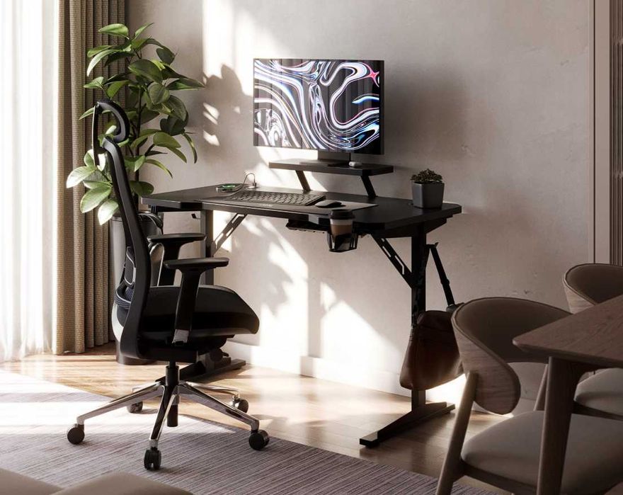 NOWE Biurko Gamingowe Komputerowe Z Półką I Ładowarką Usb Czarne FV