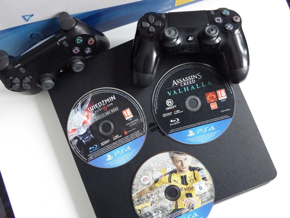 KONSOLA SONY PS4 Slim 500GB 2xPAD Wiedźmin 3 / Valhalla / FIFA mega !