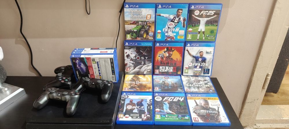 PS4 PlayStation 4 Slim 1TB + 2 Pady + Gry – Stan Bardzo Dobry
