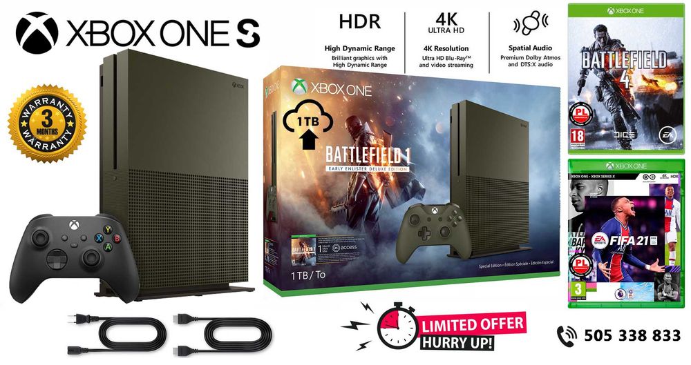 Xbox One S 1TB (1000GB) z napędem + 2 gry + pad v2 + hdmi + gwarancja