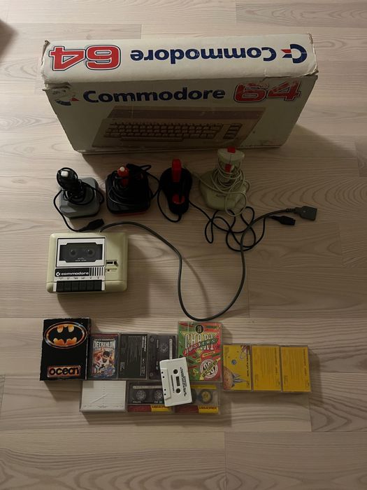 Zestaw Commodore 64 + zasilacz + magnetofon z kartonem i kartą gwaran.