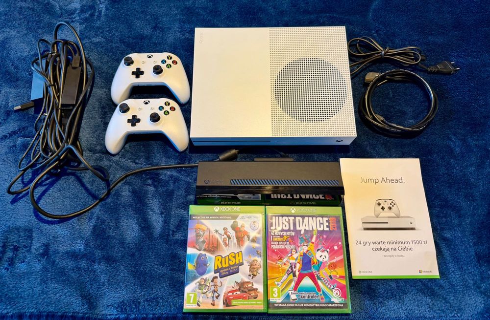 Xbox One S 1TB Kinect 2 gry Pad Just dance 2022 okablowanie adapter