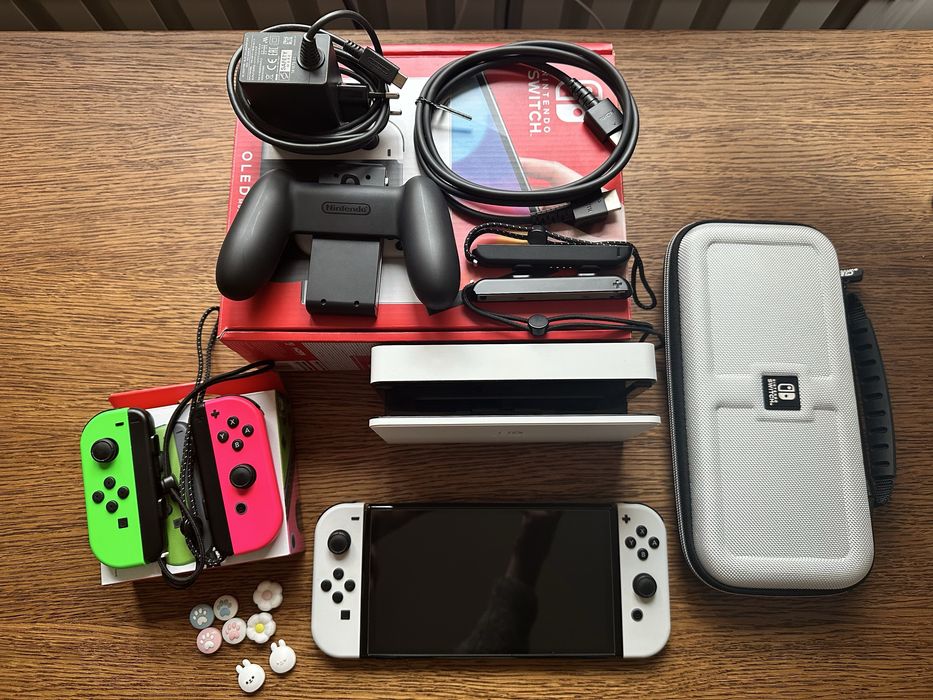 Nintendo Switch OLED + 2 pary Joy-Con + etui. Pełny zestaw