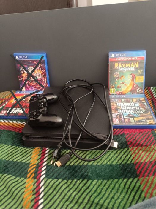 PlayStation 4 slim 500gb, 2 pady, 4 gry.