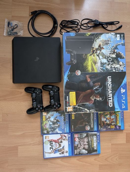 Konsola PS4 Slim 1 TB | 2 pady | 5 gier | oryginalne pudełko