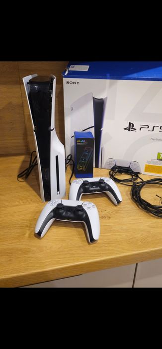 Playstation 5 slim z napedem dysk 1tb z ladowarka i 2 pady