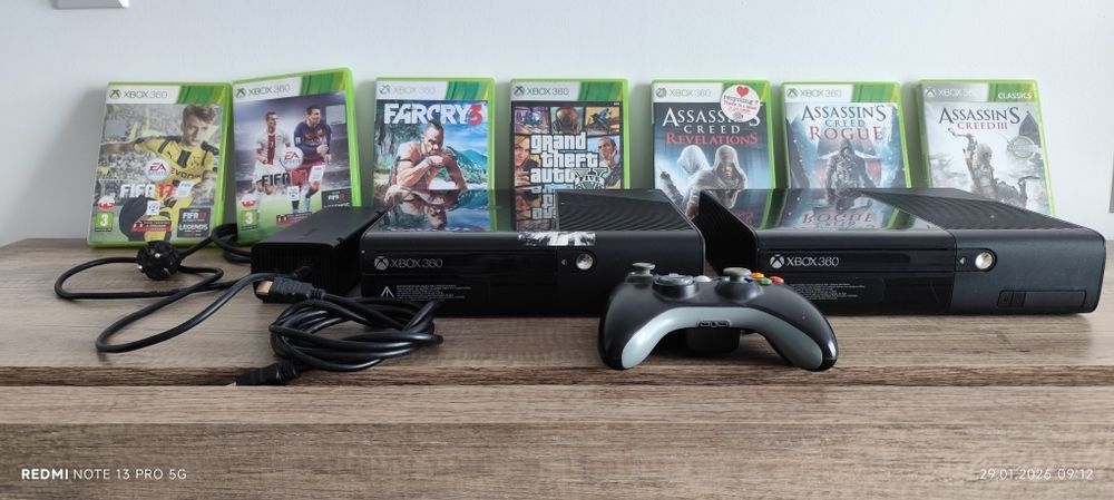 Zestaw  konsoli Xbox 360 Slim E + pad + zasilacz + HDMI + zestaw gier