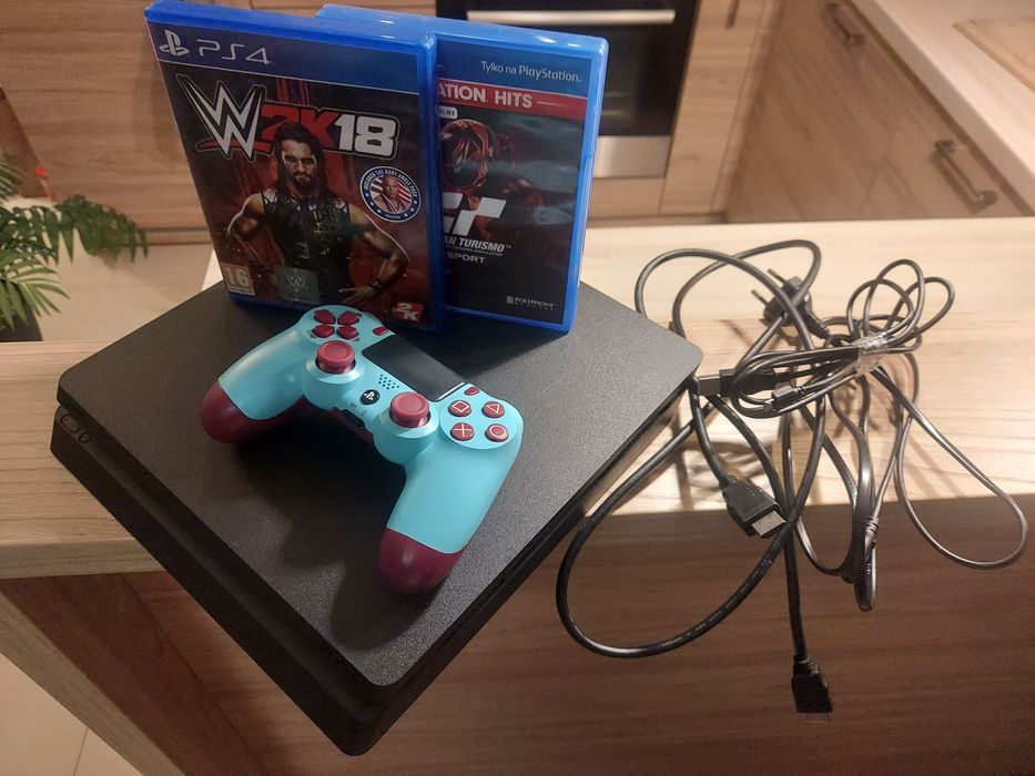 Konsola Sony PlayStation 4 Slim 1TB PS4 z padem, 2 grami – sprawna