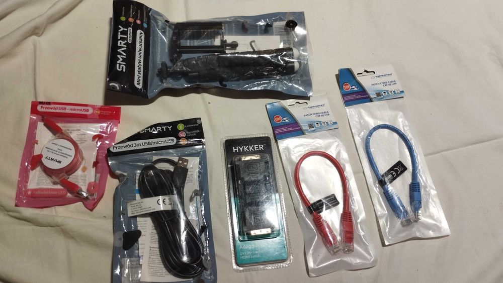 Zestaw kabli microUSB, adapter DVi/HDMI, seciowy (skrętka),mini statyw