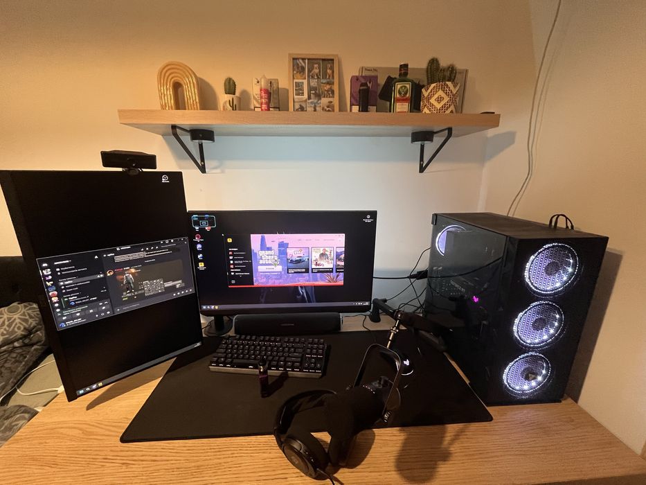 Komputer gamingowy, 2 monitory, myszka klawiatura mikrofon kamerka