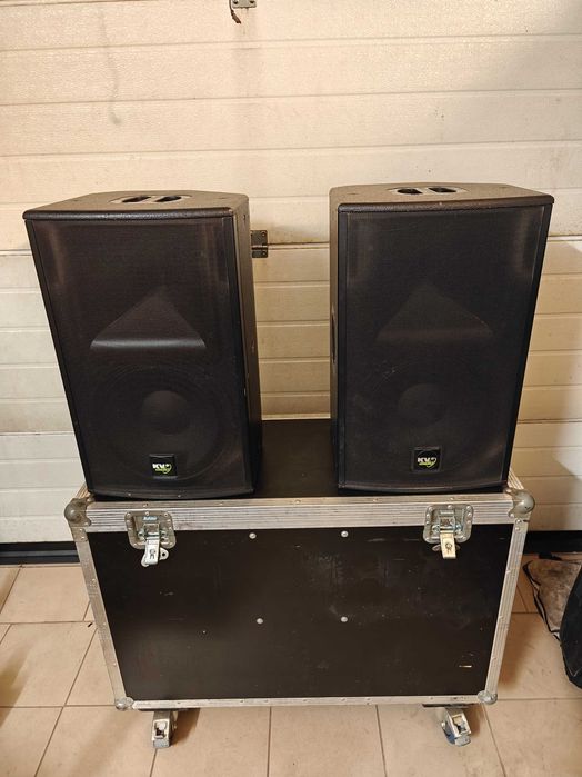 Dwa aktywne basy KV2 Audio EX2.2 w cases na kołach
