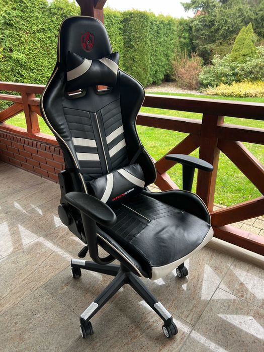Fotel dla gracza i do biura SHADOW GAMER – czarno-biały, regulowany