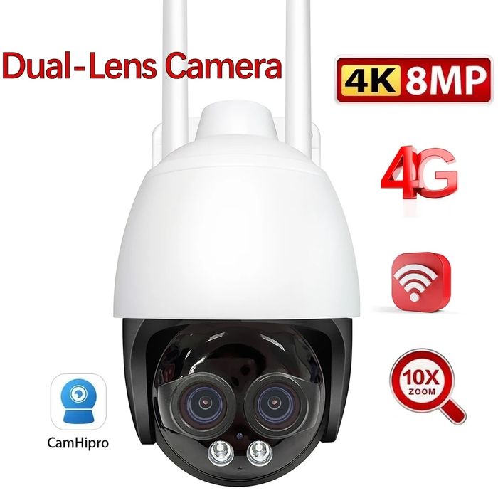 Kamera Zew 4G LTE SIM lub LAN 4K 8MP 10xZoom 2xobiektyw + KartaSD64GB