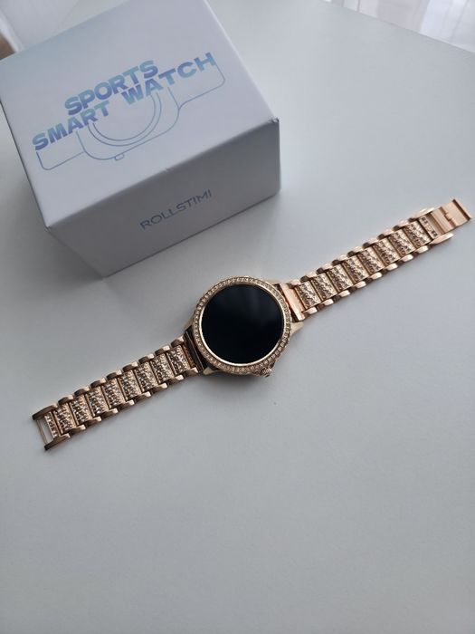 Damski smartwatch z cekinami, amoled, komplet nowy