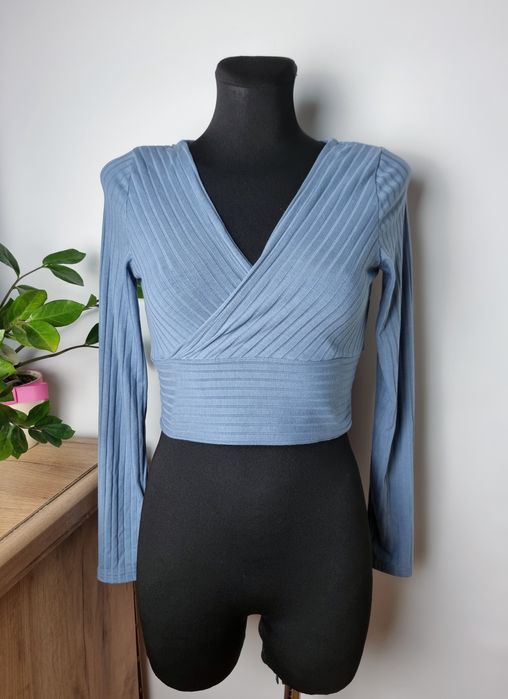 Prążkowana bluzka prążek dekolt kopertowy V na zakładkę S 36