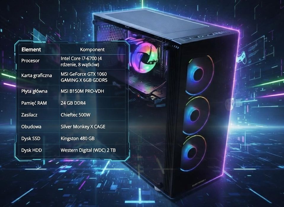 PC rezerwacja I7-6700\GTX 1060 6GB DDR5\24GB DDR4\SSD480GB\2TB\500W