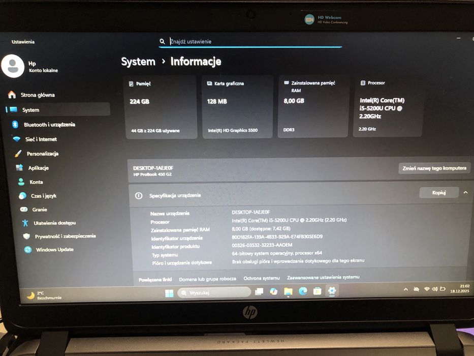 Laptop hp ProBook 450 g2 windows 11