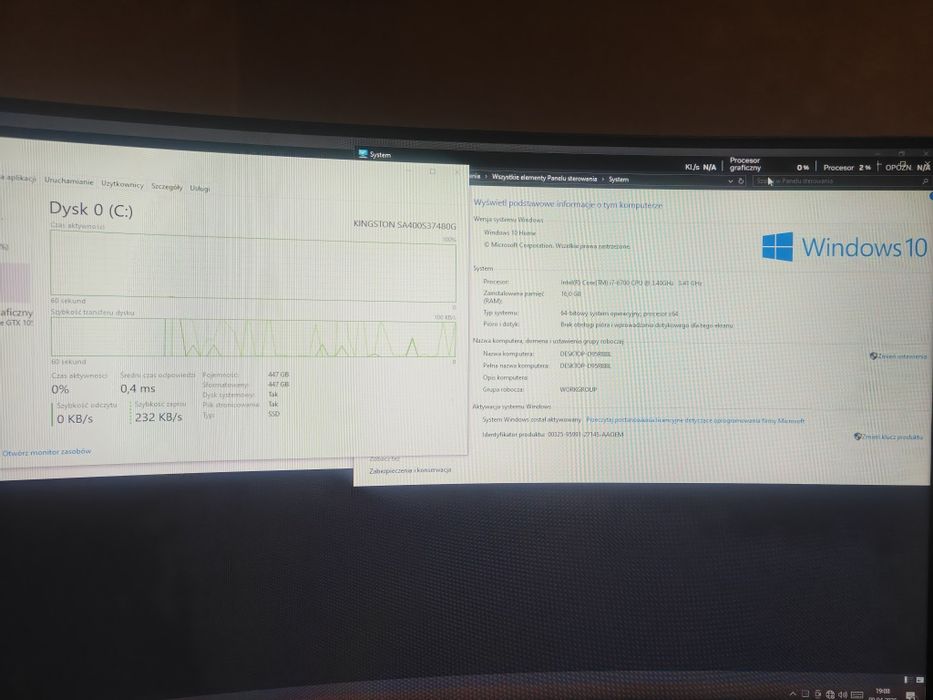 Komputer PC: intel Core i7 4771, 1050 ti, 16 GB RAM