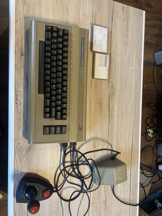 Commodore C64 klasyczny zestaw joystick kasety retro
