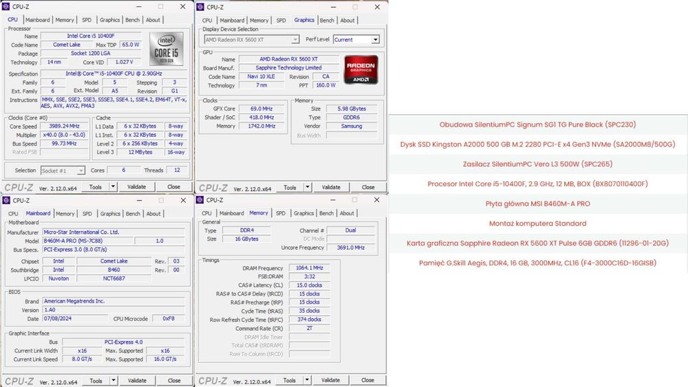 Komputer i5-10400F / RX 5600 XT / 16 GB RAM