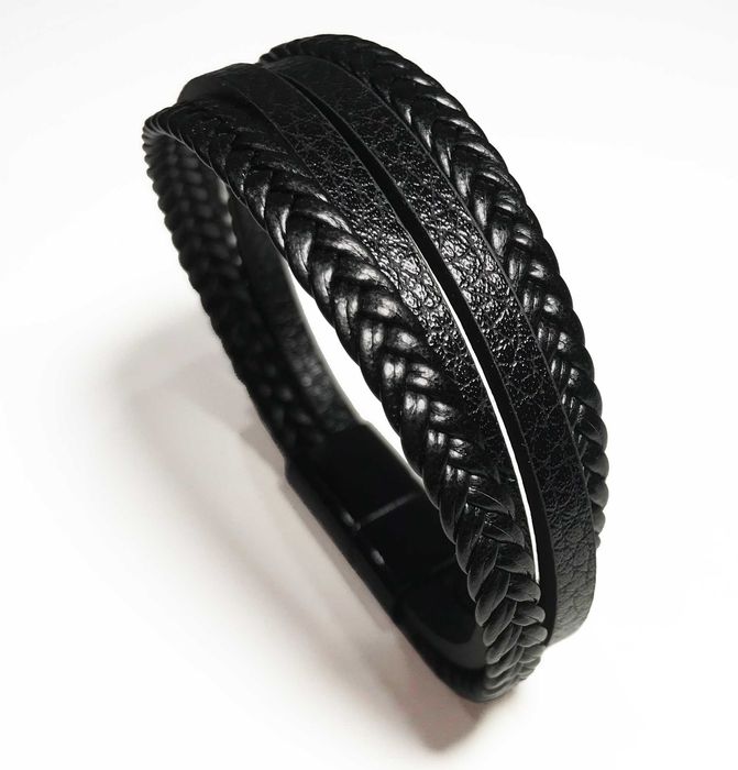 Bransoleta skórzana, czarna, nowa