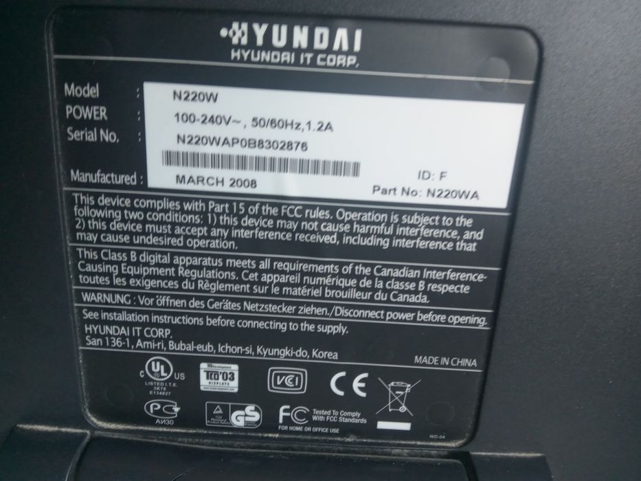 Monitor Hyundai model n220w uszkodzony