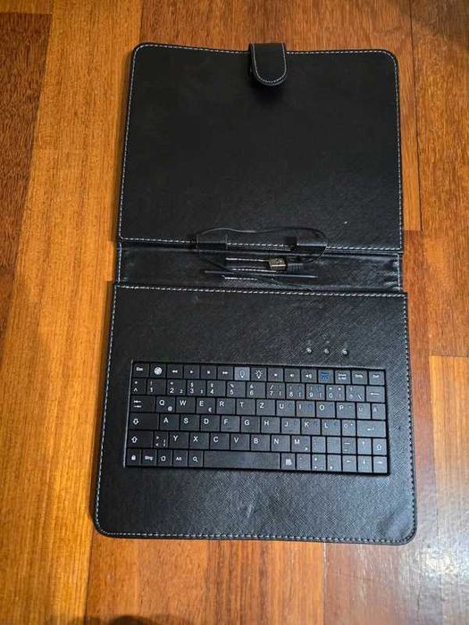 Czarny pokrowiec z klawiaturą, rysikiem i stopką, stan: bardzo dobry