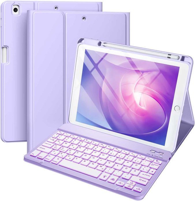 Vobafe etui klawiatura bluetooth LED iPad 7/8/9 10,2" stojak fioletowe