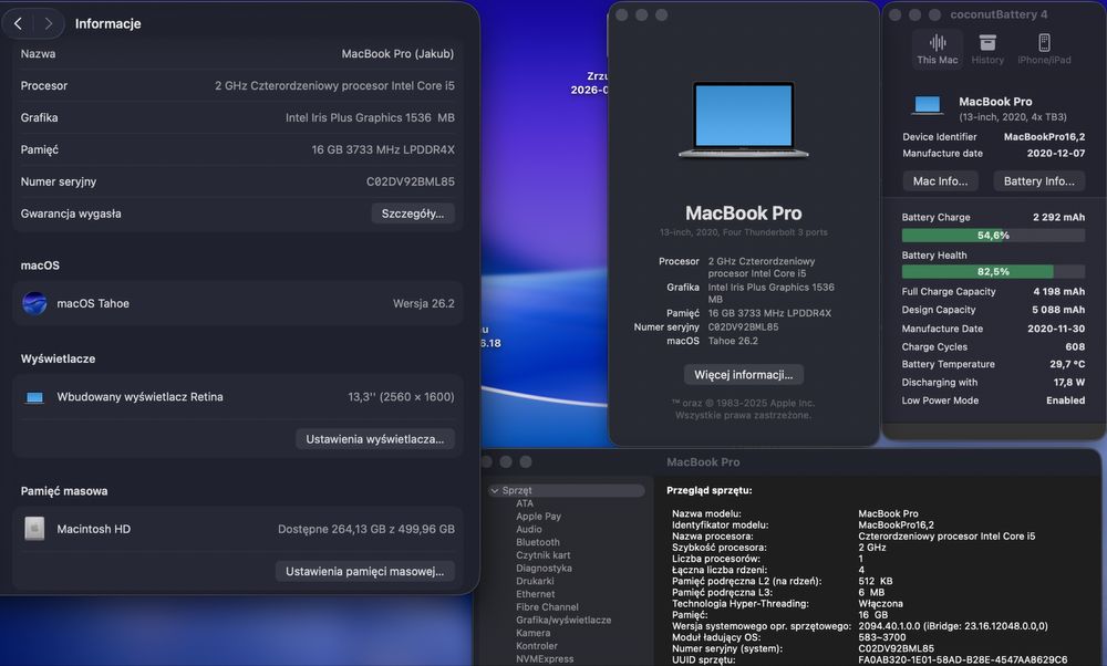 Apple MacBook Pro 13"A2289 (2020) i5 /16GBRAM/512GB /NOWA BATERIA 100%