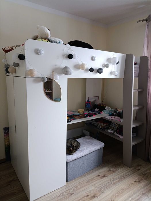 Łóżko antresola z biurkiem i szafa