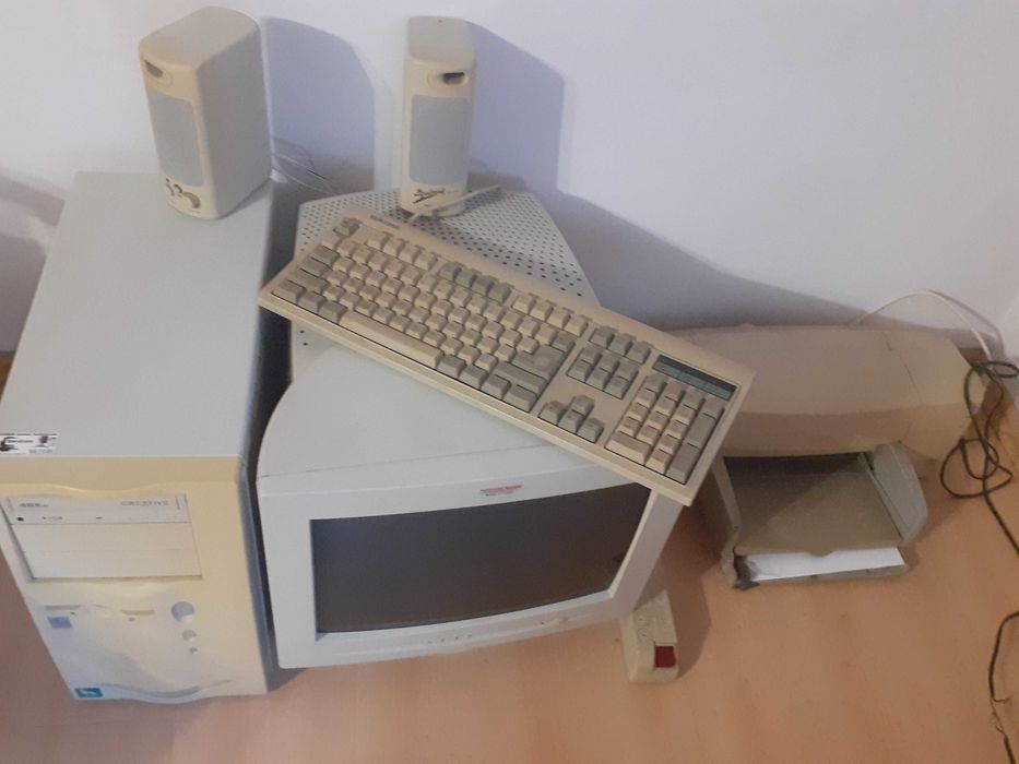 Zestaw komputerowy komputer stacjonarny  ekran  drukarka klaw glosni