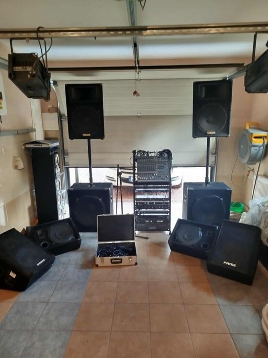 Nagłośnienie estradowe komplet – kolumny, wzmacniacz, statywy, kable