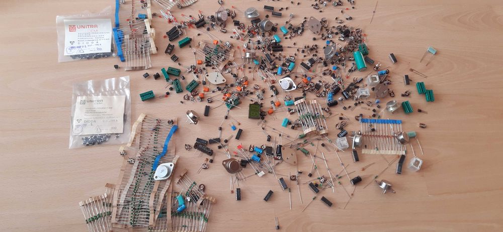 Rezystory, kondensatory, tranzystory, diody, led, części elektroniczne