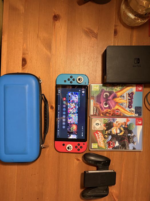 Nintendo Switch Oled +dwie gry + etui XXL+ etui małe