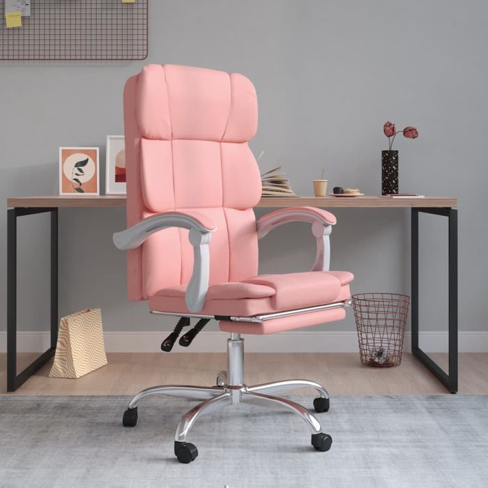 Rozkładany Fotel Biurowy, Różowy, Sztuczna Skóra