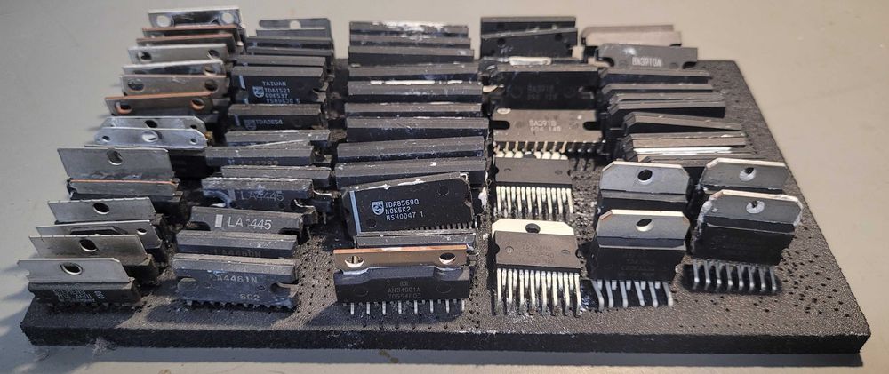 87 szt. układy scalone, większość to wzmacniacze audio seria TDA, AN