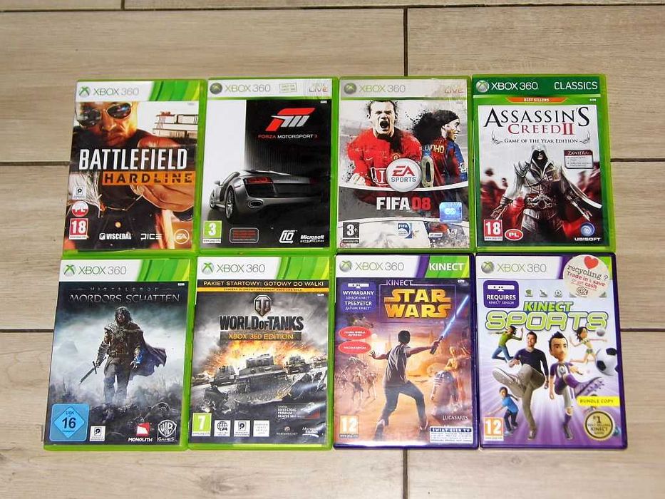 Gry XBox 360 BattIefield, Fifa 08, Shadow of Mordor, Kinect Sports