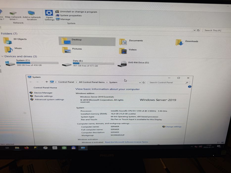 Serwer dell t130 z systemem: windows serwer 2016!!!