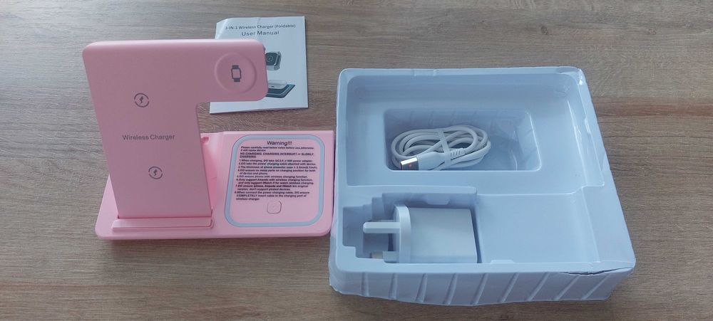 Bezprzewodowa Stacja Ładowania 3w1 iPhone Apple Watch Airpods Różowa