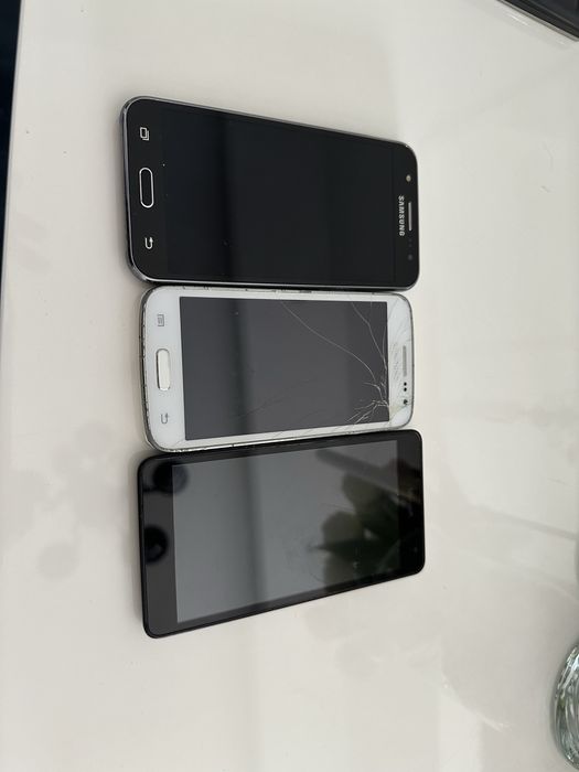 Stare, dotykowe telefony uszkodzone, bez kabla.