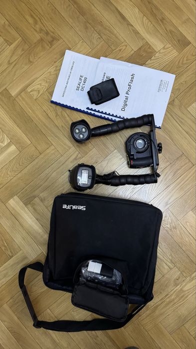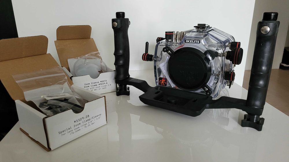 Zestaw do fotografii podwodnej Aparat Olympic + obudowa + oświetlenie,