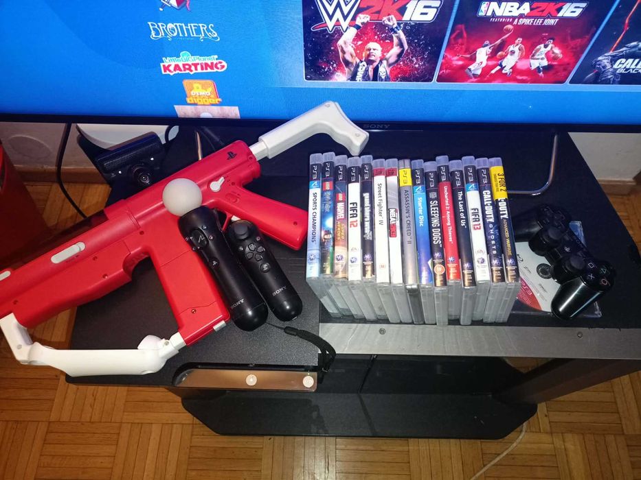 Mega zestaw PS3, kontroler, move kamerka, sharp shooter 16gier, 250GB