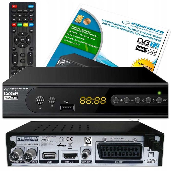 Darmowa telewizja cyfrowa DVB-T2 HEVC Nowy komplet z wysyłką w cenie