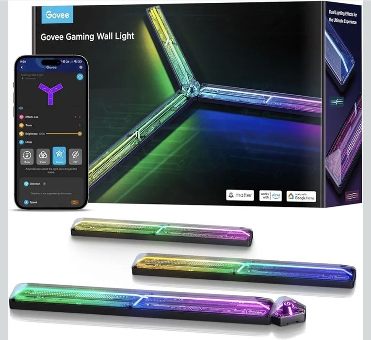 Kinkiet do gier Govee, kinkiet RGBIC Glide Matter, Alexą, Google LED